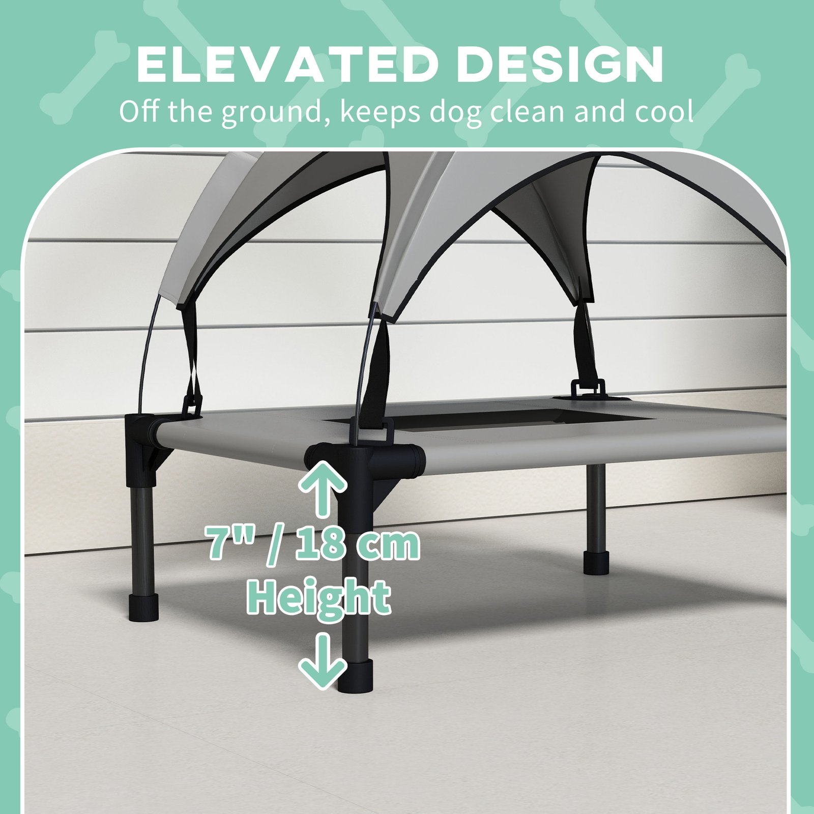Spoil your pets with PawHut’s elevated dog bed the epitome of comfort and style. With a water and UV-resistant canopy, it shields your companion from sun and rain, whilst the mesh cover ensures optimal airflow, keeping them cool and cosy. Designed for relaxing outdoors, its raised base keeps them from the cold and dirty ground for maximum comfort. A luxurious retreat for pets to revel in, it’s a must-have for all dog owners.