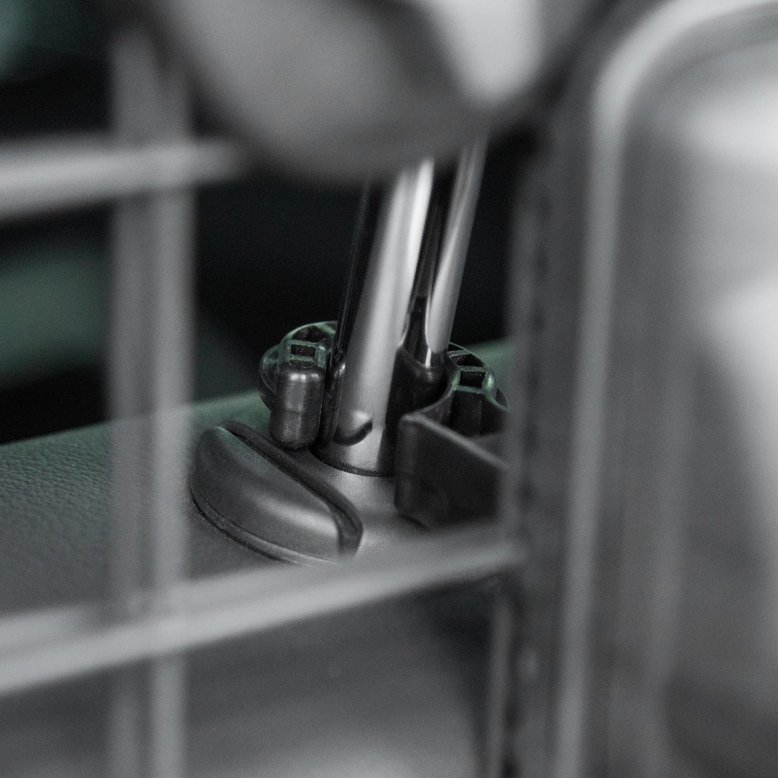 - Keeps dogs in the back of the car, safely away from driver and passengers