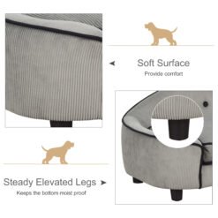 This dog couch from PawHut is made for cats or dogs to lounge in luxury. The frame is made from wood, making it solid and stable during everyday use, and it’s crafted into a large oval shape, giving them plenty of resting room. The corduroy-feel upholstery is soft to the touch, and it’s fitted with a thick cushion for them to lie on comfortably. Black piping on the seams provides a stylish contrast, and this grey dog bed is finished with four thick feet to keep the balance of the frame.