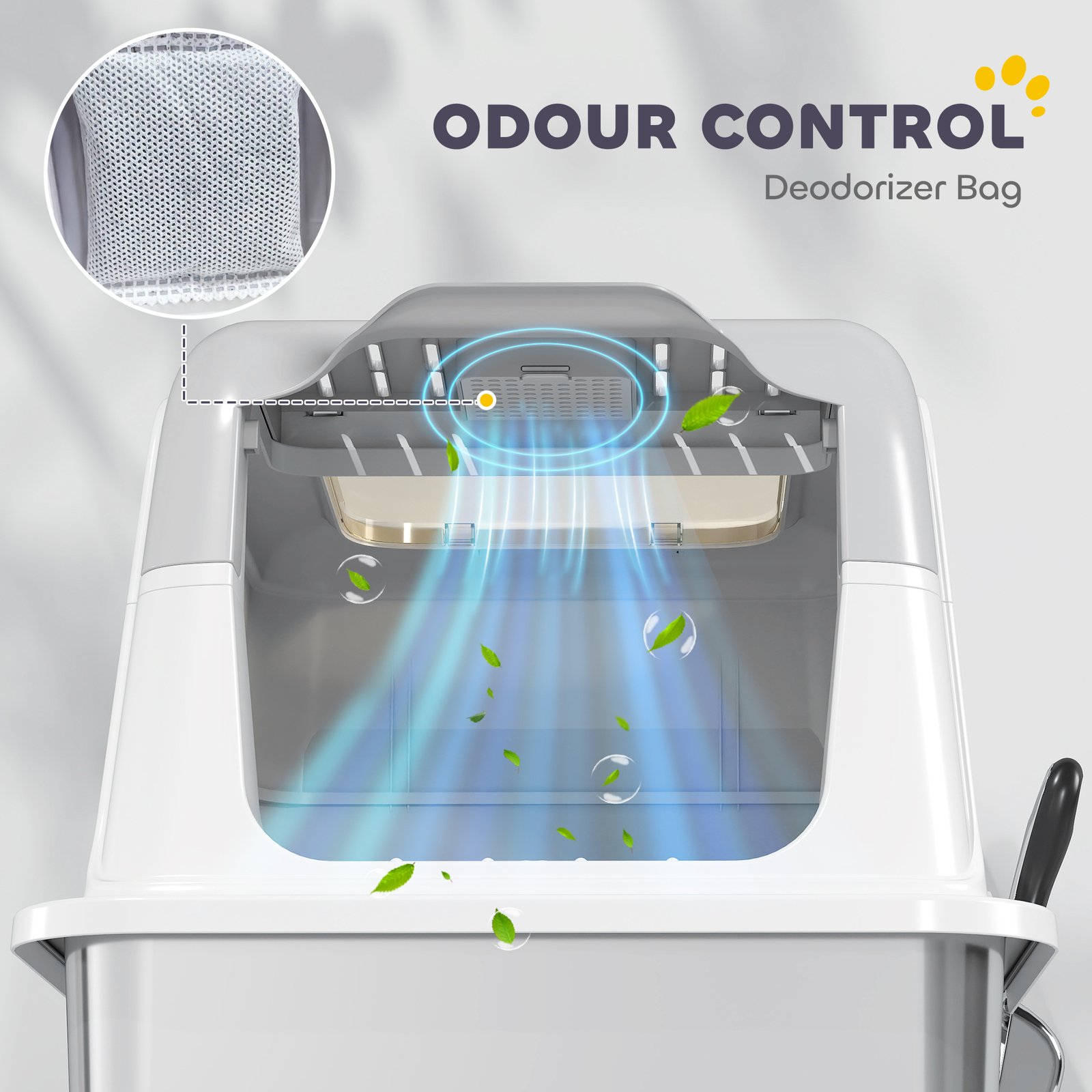 Discover the magic of a mess-free home with the PawHut Enclosed Cat Litter Box! Boasting a stainless steel tray that’s a breeze to clean, this cat litter tray is both odour-resistant and scratch-proof. Its smart front-entry and top-exit design keeps floors clean, while the sand drop area cleverly traps escaping litter. Plus, it includes a deodorizer bag to keep the area fresh. A fresh approach to your kitty’s needs!