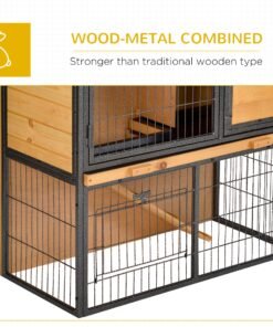 Give your furry friend a comfortable living space from PawHut. This deluxe duck house with unique combination of wood and metal is a perfect mix of safety and freedom for your furry friends and offers all the comforts of home. A cozy, house-style indoor space and spacious front courtyard area offers plenty of room to hoop around. An internal ramp provides quick access between two floor. Lockable door and openable roof provides easy access for cleaning and routine tasks.