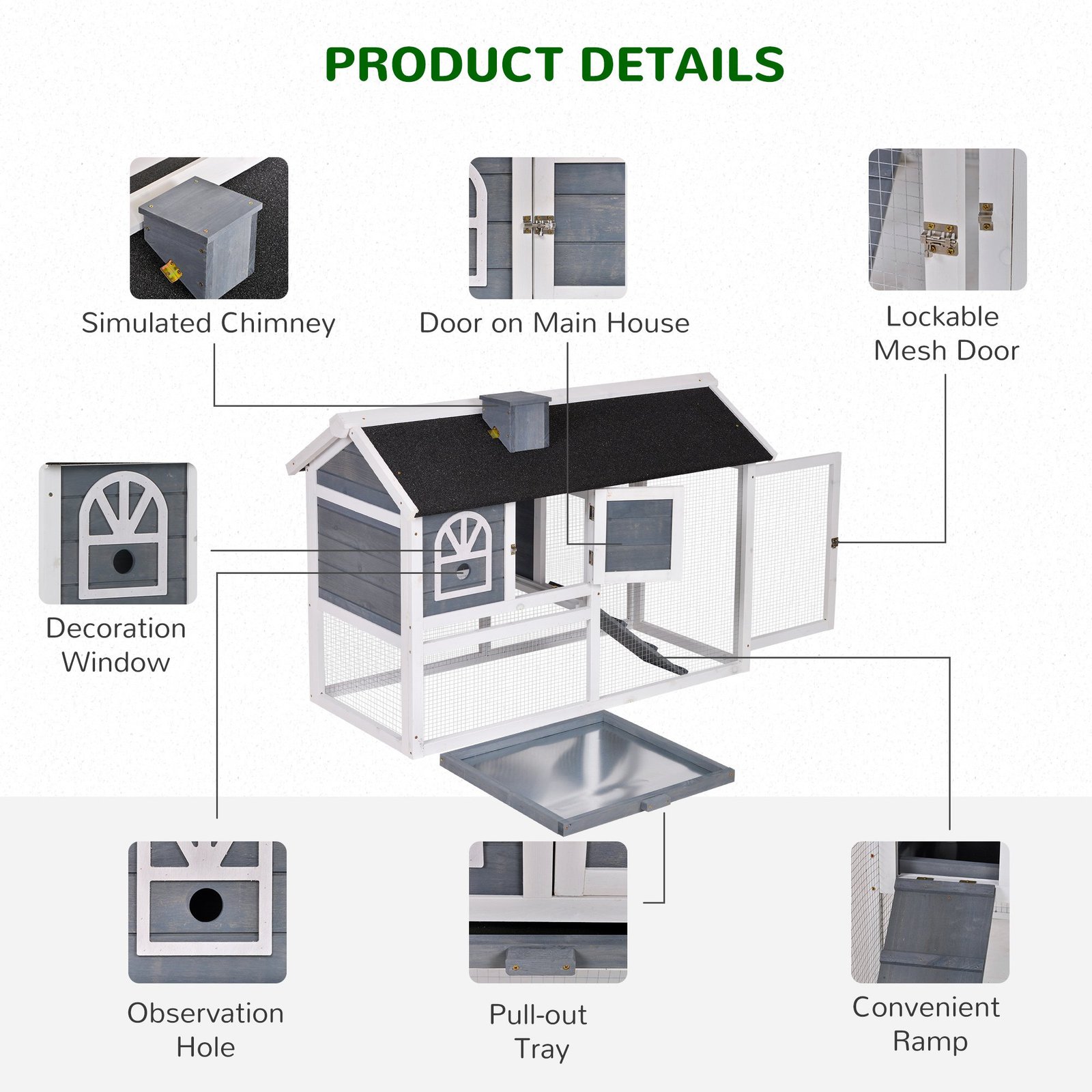 - Door Size: 23.5L x 25H cm (Main House), 40L x 53H cm (run area)