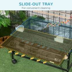 Treat your birds to a spacious and cosy PawHut flight cage. With plenty of room to spread their wings, different perches, toys, ladders and platforms, it’s the perfect home. There are multiple doors and containers for food and water, so catering to your pets is easy. They’ll live in a tidy space, thanks to the removable tray making cleaning effortless. Plus, with four wheels and two brakes, it’s mobile and stable for extra convenience and safety.