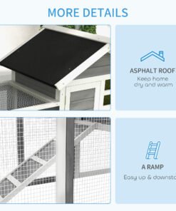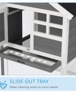 Create a cozy sanctuary for your beloved rabbits or guinea pigs with the PawHut rabbit hutch. This thoughtfully designed two-story haven, crafted from durable fir wood and coated with protective water-based paint, offers both comfort and security. The steel wire run allows your pets to bask in fresh air safely. With easy-open doors and a pull-out tray, maintenance is a breeze. The asphalt-covered roof adds an extra protection, ensuring pets enjoy a healthy, happy life in their charming abode.