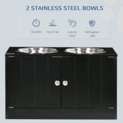 PawHut Raised Pet Feeder, with Two Bowls, Storage – Black