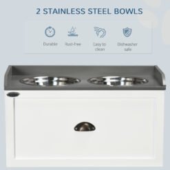 With these raised dog food bowls from PawHut, large and older dogs can drink and eat comfortably. Bending down for food causes strain, which can lead to health problems in the future this won’t be an issue with this dog feeding station. It includes two stainless steel bowls for food and water, which are removable for cleaning. There’s a hidden cabinet to keep pet supplies, so it’s quick and easy to refill their bowls. Finished with a sleek design, it’ll complement your living space perfectly.