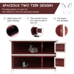 The PawHut 2 Tier Wooden Hutch is ideal for Bunny Rabbits, Guinea Pigs and other small pets. The house features a weather resistant fir wood construction with metal wires. Each level has a cozy hutch with open run. One pullout tray on each level makes it easy to clean.