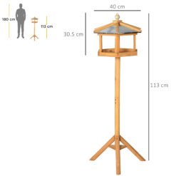 Enjoy birdsong and connect with nature using our sturdy PawHut bird feeder.Help feed wildlife while attracting many and varied smaller birds. Ideal for garden, patio and balconies, this wooden bird feeder with stand will attract finch, chickadees and other small birds. The roof overhang protects the space from rain. Wooden construction and a weatherproof finish means this bird feeder will endure years of use with very little maintenance. Provide birds a new feeding spot with this Bird Feeder.