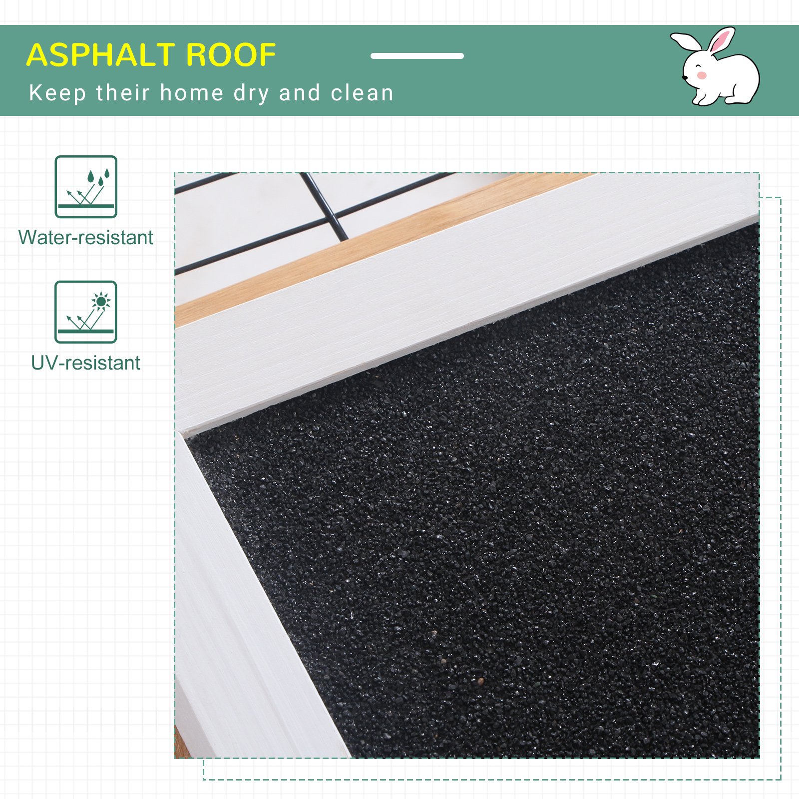 - Weather-resistant fir wood and water-resistant composite asphalt roof – suitable for outdoors