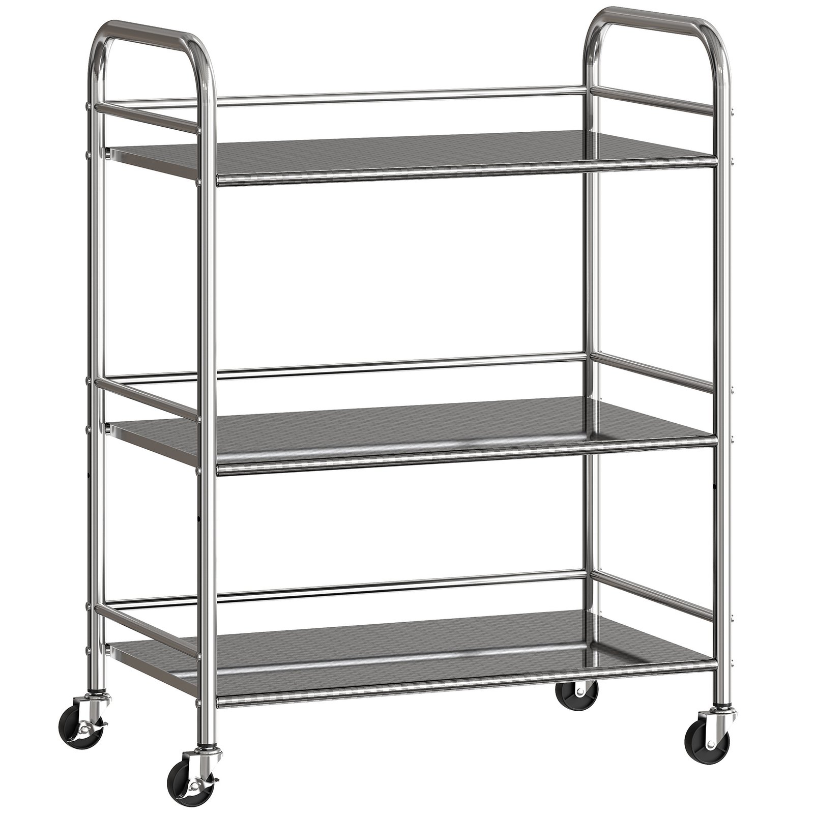 Struggling with cluttered kitchen spaces and items that just don’t fit? Our 3-tier storage trolley from HOMCOM offers the great solution. The middle shelf is adjustable to accommodate any kitchenware or appliance. Glide this versatile serving trolley smoothly between rooms, then securely lock it in place for stability. Built with robust 201 stainless steel, the rolling cart resists corrosion and scratches, ensuring lasting durability and a more organised, serene home setting.