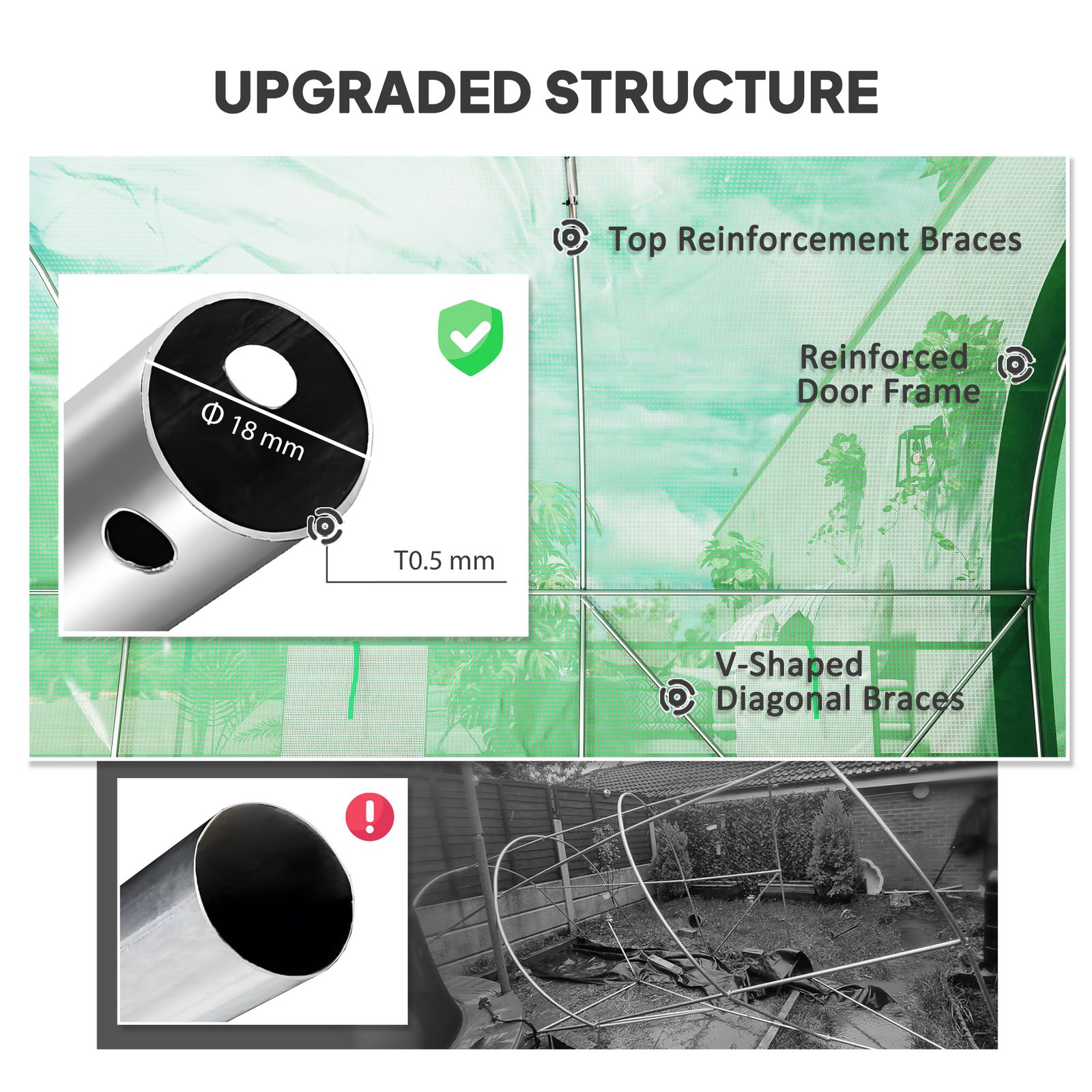 Outsunny 6 x 3(m) Polytunnel Greenhouse with Upgraded Structure, Mesh Door and Windows, 15 Plant Labels, Green