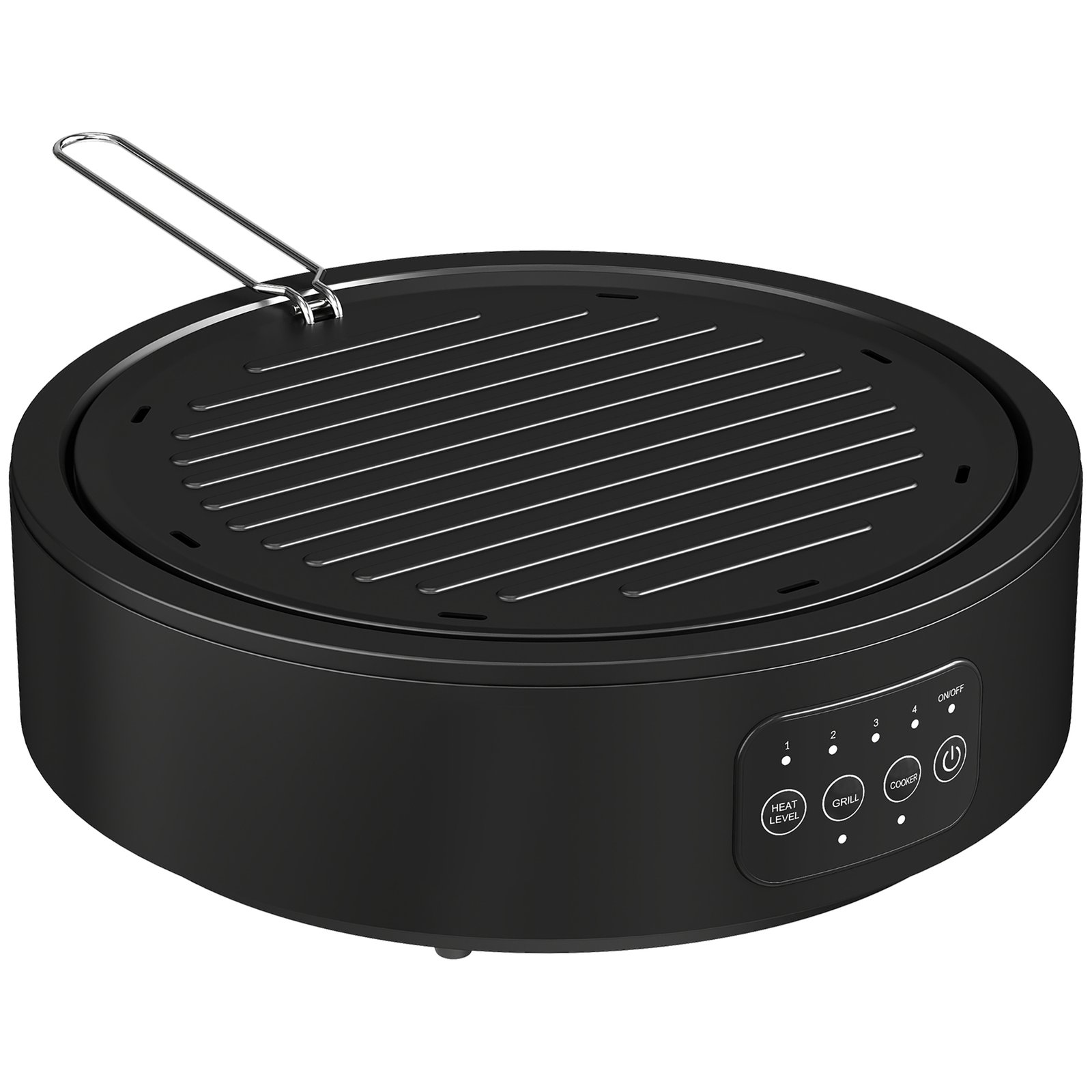 HOMCOM Electric Ceramic Hob with Grill Plate, Multifunctional 36cm Plug in Electric Hob with 4 Heat Levels for All Type Pot