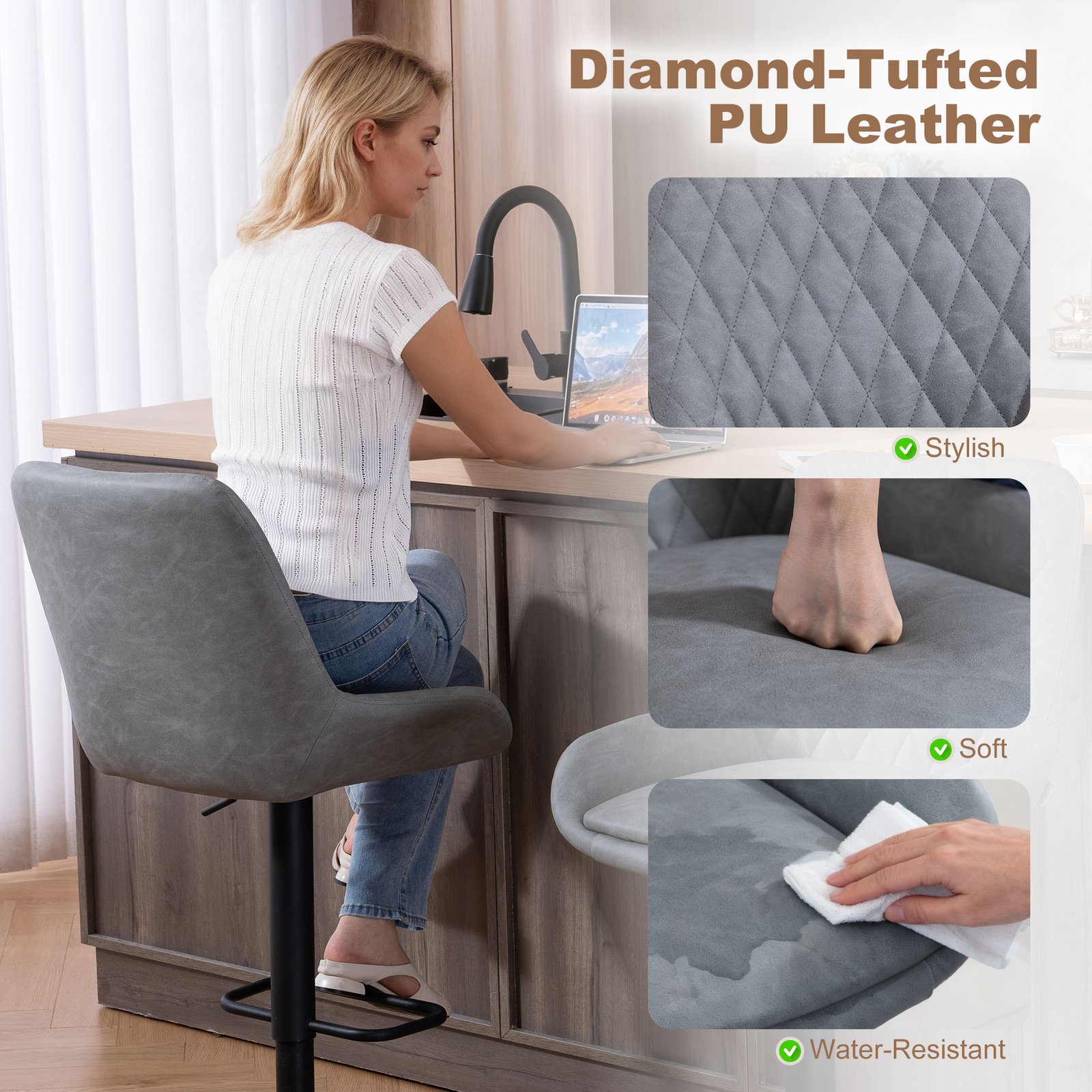 A stylish look for your kitchen dining spots with these HOMCOM bar stools. Faux leather upholstery for a beautiful look. Padded seat and high back to keep you comfortable and supported. A metal base for strength and keeping you supported, the height is adjustable between 63-83cm: set to a level best for you. Completed with a lower footrest.