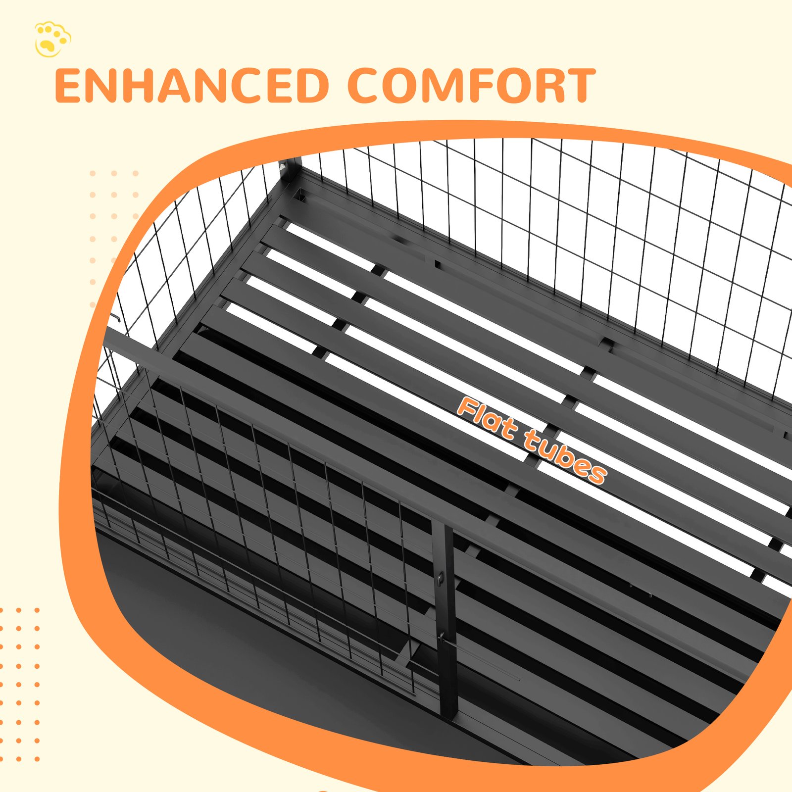Who let the dogs out? Not you, thanks to this PawHut dog crate. A space where comfort meets convenience, its flat tube bottom provides a cosy retreat, whist the included bowl and holder ensure pets never go hungry. The large door provides easy access the locks keep them securely inside when needed. Plus, there’s a smaller door, so they can enjoy a quick snack. Finished with wheels at the bottom, you’ll wheel the crate from room to room, so your pets are always by your side.