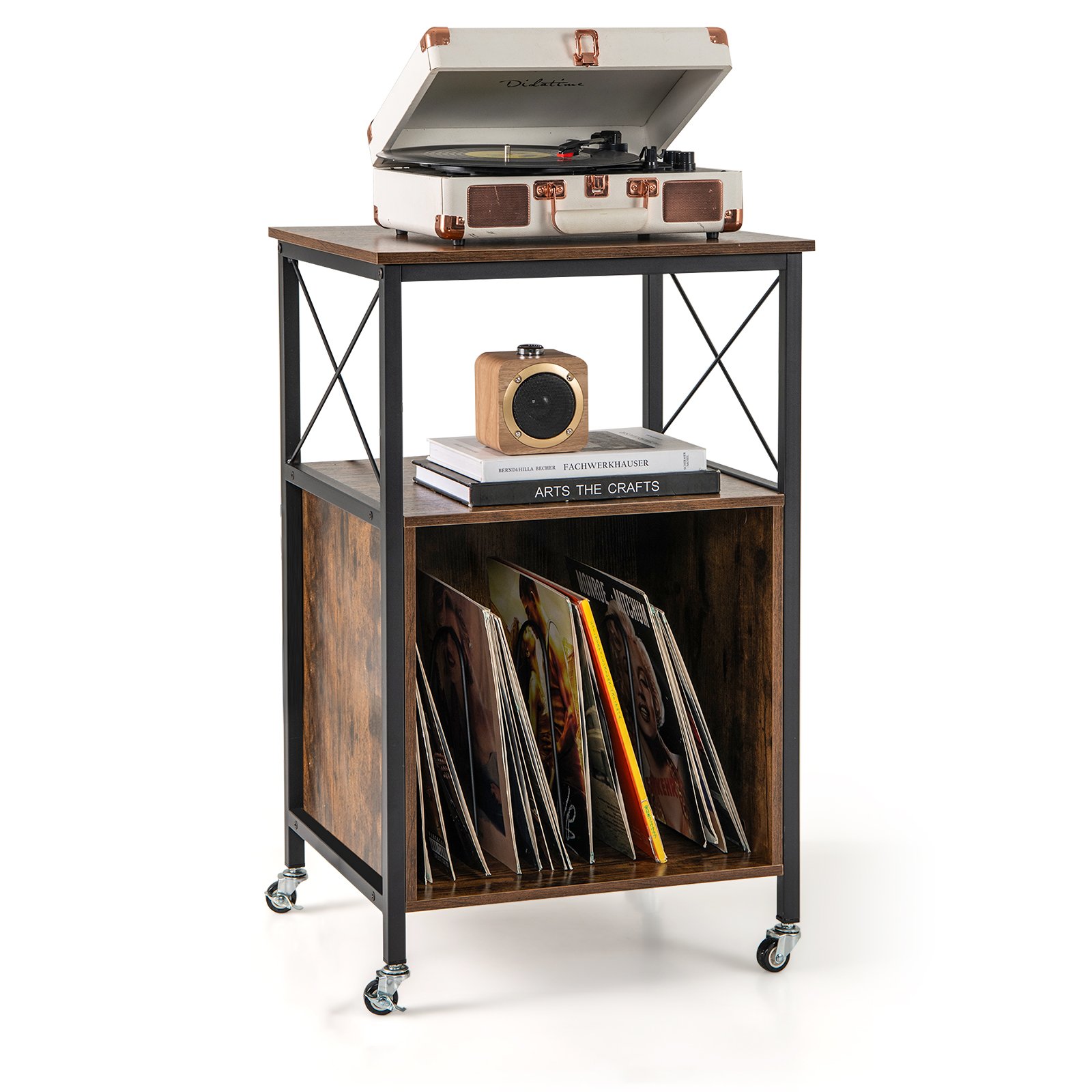 Colour: Rustic Brown Material: Engineered Wood, Metal Overall Dimensions: 50 x 45 x 82 cm (L x W x H) Size of the Lower Shelf: 41 x 41 x 40 cm (L x W x H) Power Cord Length: 150 cm AC Outlets: 250V / 13A Type-c & USB Port: 5V / Max 3.1A Weight Capacity in Total: 85 kg Net Weight: 13 kg Box QTY: 1 Package Includes: 1 x Record Player Stand 1 x Instruction Manual