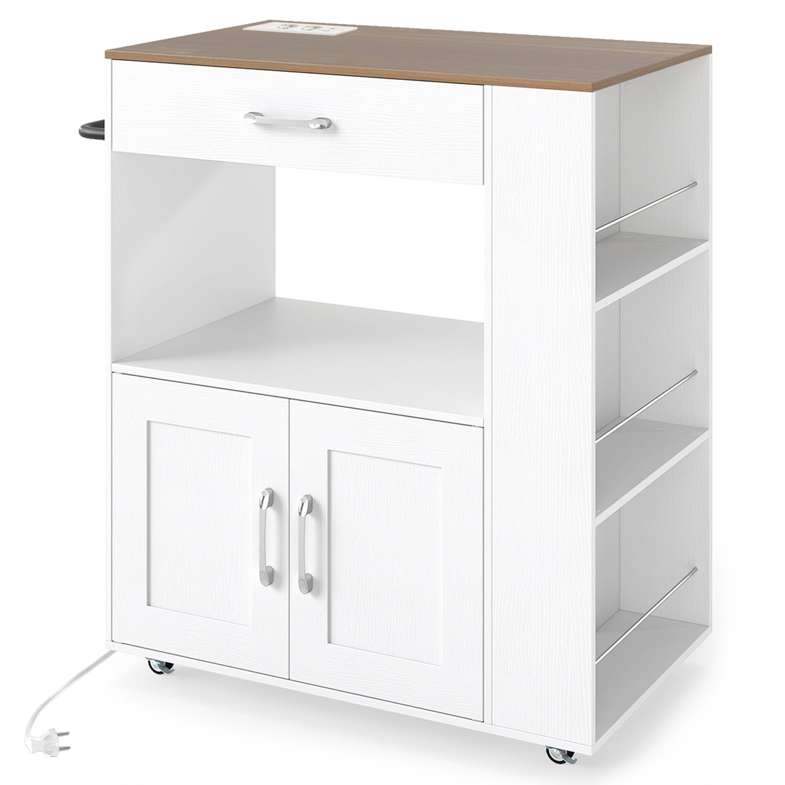 Rolling Kitchen Island with Built-in Charging Station and Lockable Wheels-Natural & White
