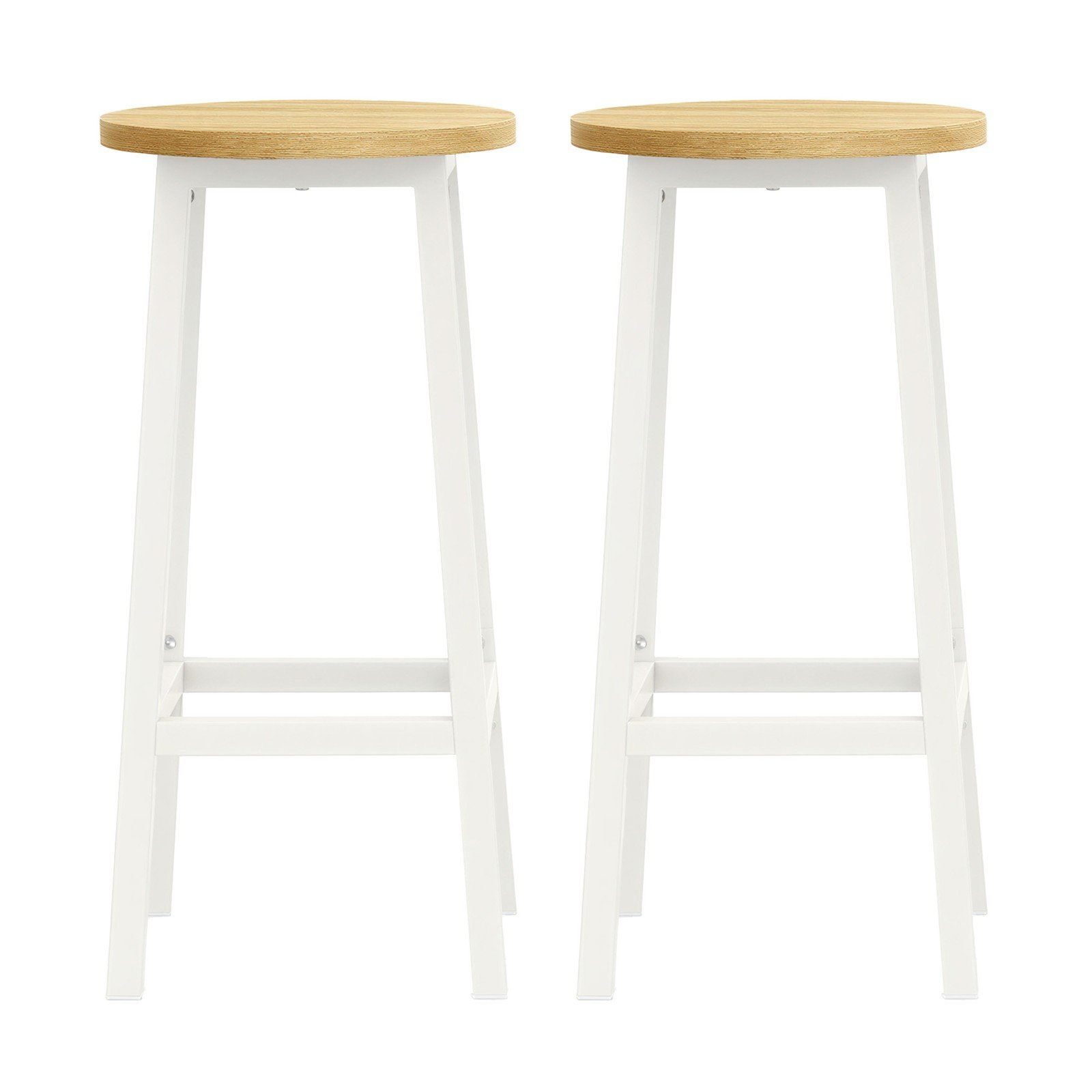 Bar Stools Set of 2, Kitchen Stools, Bar Chairs Footrest, 65 cm High, for Kitchen, Living Room, Dining Room, Oak Beige and White