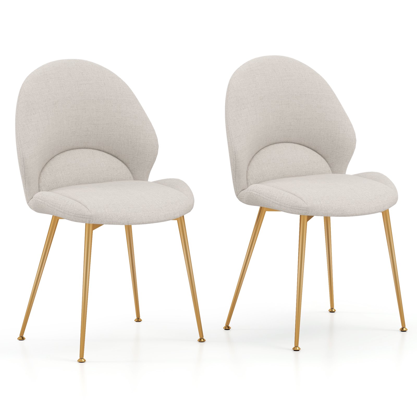 Set of 2 Upholstered Accent Chairs with Curved Backrest Adjustable Foot Pads-Grey