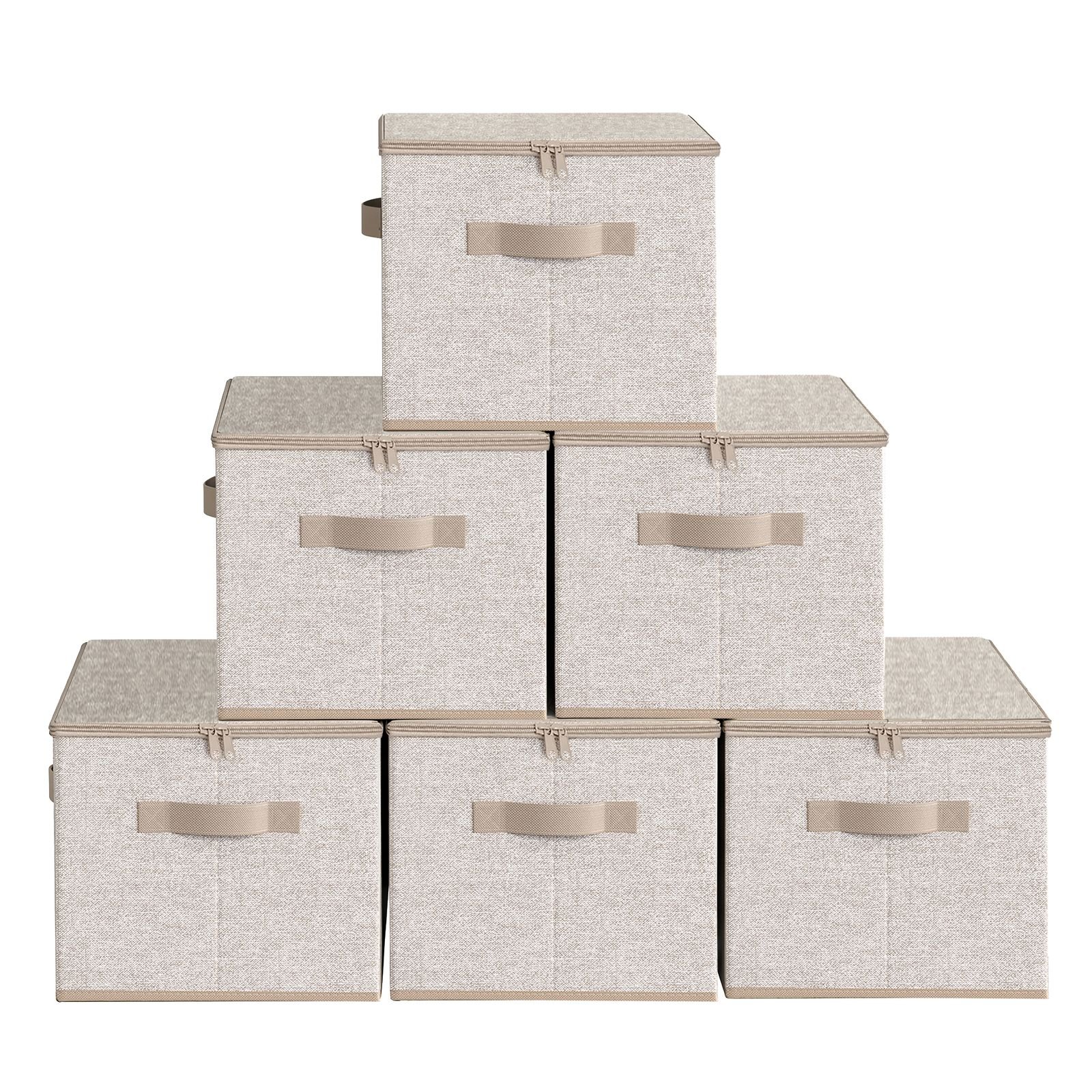 Set of 6 Foldable Storage Boxes with Lids and Handles, Non-Woven Clothes Organiser Baskets, 40 x 30 x 25 cm
