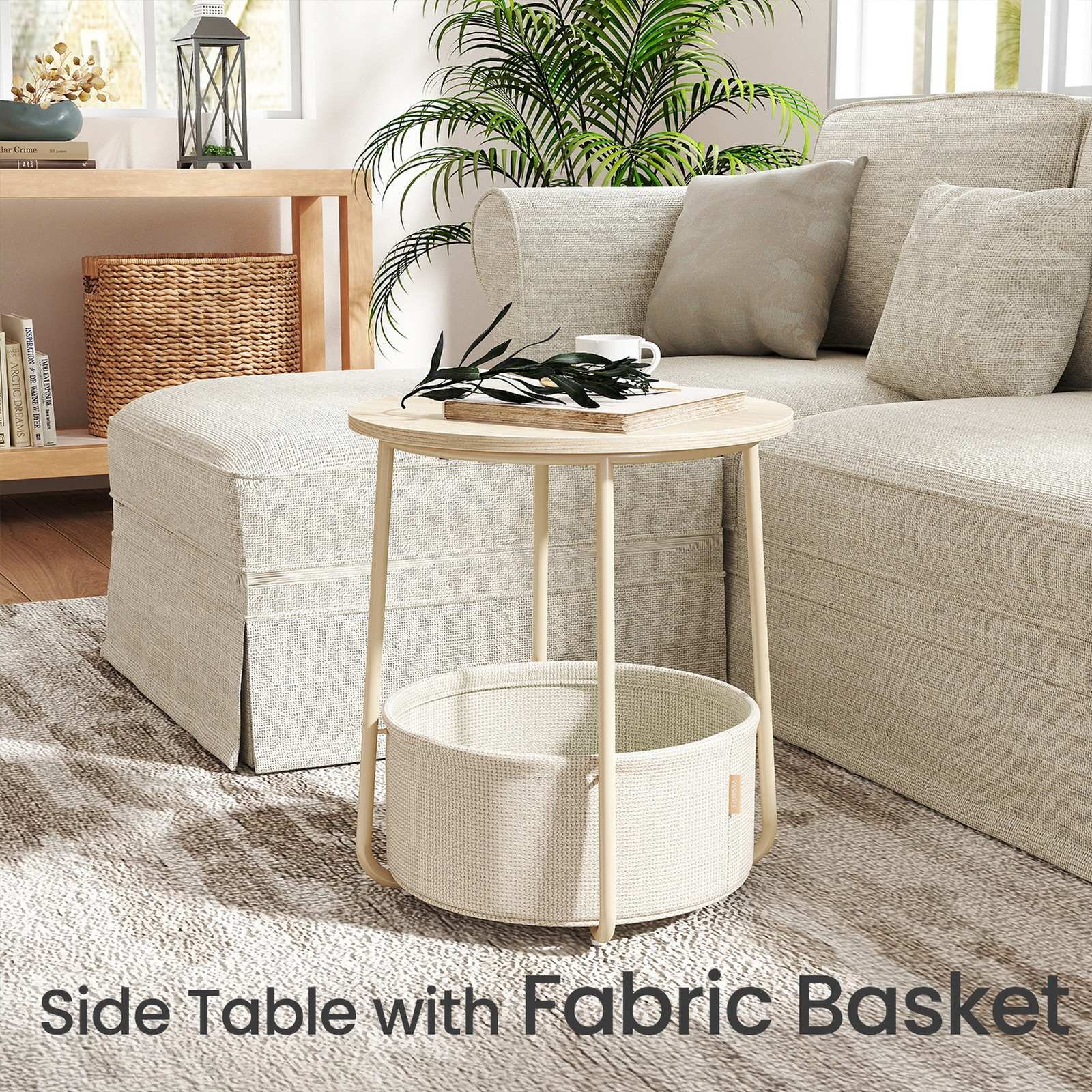 Side Table, Round End Table with Fabric Basket, for Living Room Bedroom