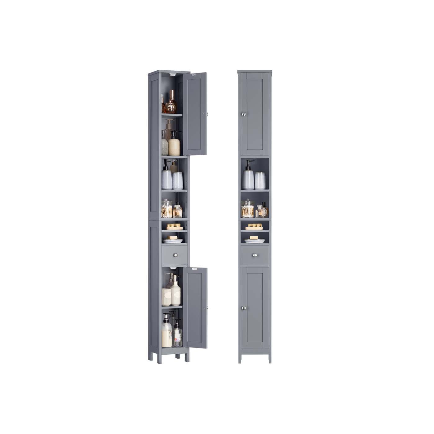 Slim Freestanding Bathroom Cabinet with Adjustable Shelves and Drawer Dove Grey