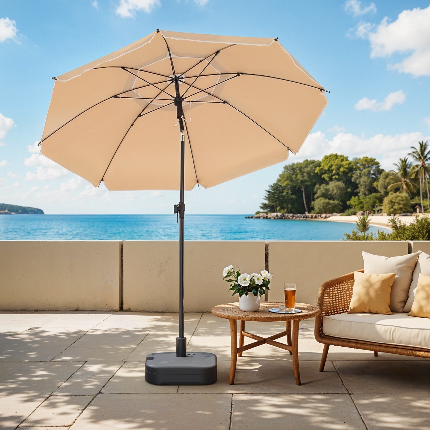 Let’s Enjoy the Beautiful Days in the Shade! The outdoor season has arrived and it’s time to equip your garden, patio and beach area with the essential sun protection: the parasol. The next time you invite your friends for a relaxing beach trip or afternoon tea in your backyard, you will love the functionality of this easy-to-use parasol.The “Must” of the Parasol: Choose the sunshade that can be tilted both to the right and left to adapt to the time of day. It measures 2.1 meters high and is 1.6 meters in diameter to accommodate 1 to 2 people. The anti-break pole is made of rustproof steel and the polyester canopy offers superior UV protection up to UPF50+.Specifications:Colour: TaupeMaterial: Powder-Coated Steel Pole, 160 g/m² Polyester Canopy, Fibreglass RibsHeight: 2.1 mArc Diameter: 1.8 mHorizontal Diameter: 1.6 mDiameter of the Pole: 22/25 mm, Thickness: 0.5 mmNet Weight: 1.6 kgPackage Contents:1 x Parasol1 x Carry BagSONGMICS Notes:Base is not included.Please close the parasol during nights and windy days.This parasol is not intended for use during rainy days.