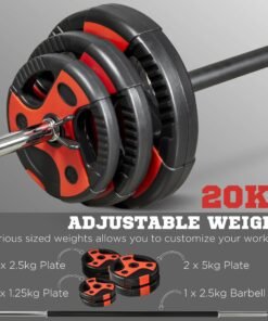 Beginner and intermediate weightlifters, this SPORTNOW 20kg barbell set is excellent for you. Three differently weighted plates – 5kg, 2.5kg and 1.25kg – allow you to tailor your exercises, adding and removing weight when necessary. The metal barbell is strong and rigid, suitable for daily use, whilst the end fixings keep the plates securely on the pole. Great for working your legs, arms, chest, back and shoulders, you’ll enjoy versatile training, keeping active in your own space.