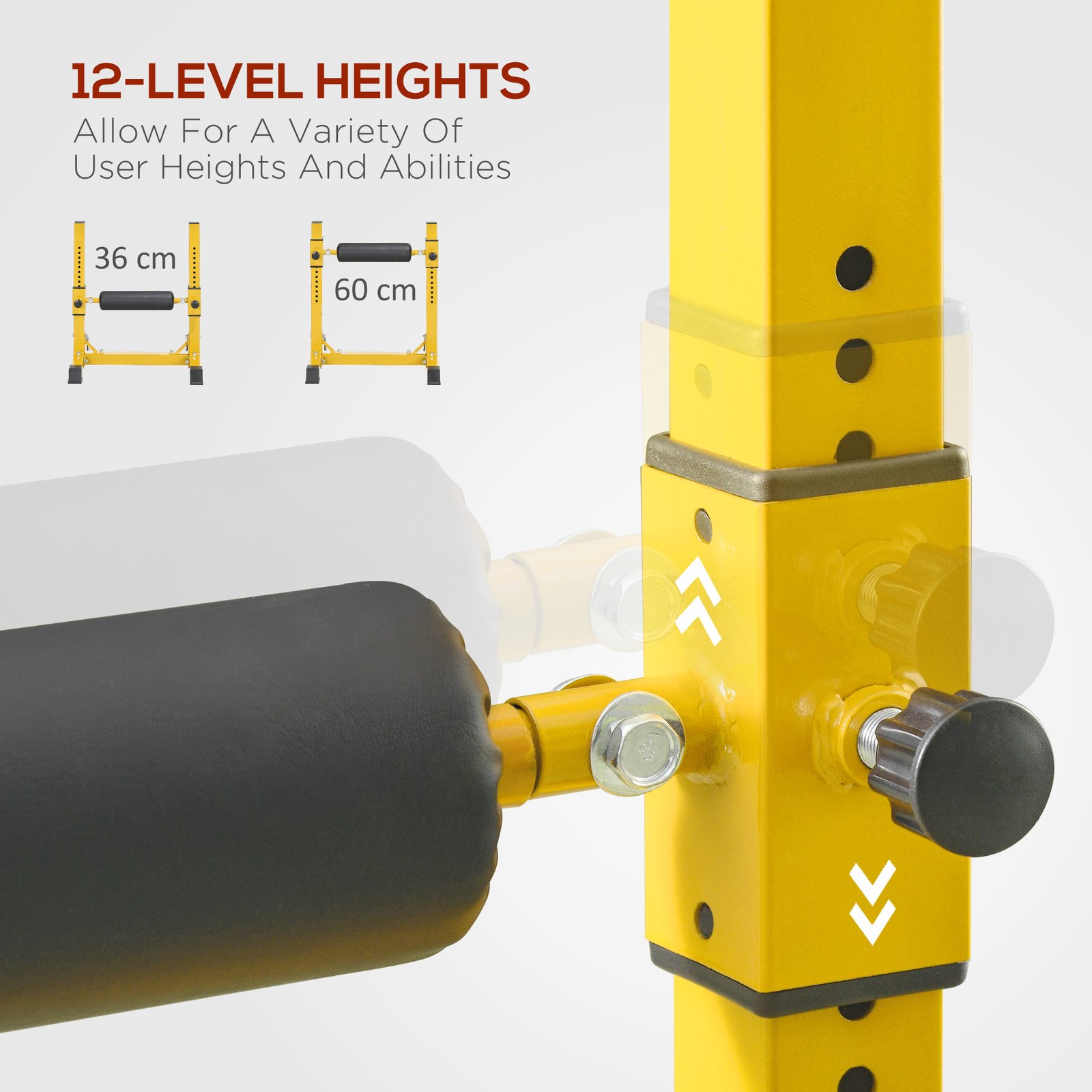 SPORTNOW Bulgarian Split Squat Stand, 12-Level Adjustable Single Leg Squat Machine with Foam Roller and Anti-Slip Pads for Lower Body Strength Training, Yellow