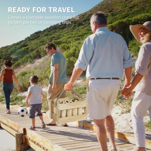 Bring classic outdoor fun to your garden with the SPORTNOW Wooden Molkky Set! This Finnish tossing game includes 12 numbered pinewood skittles and 1 throwing pin, great for all ages. Use skill and strategy to score exactly 50 points and win. Made of robust pinewood and packed in a wooden crate for easy transport, it’s suitable for BBQs, camping, beach days, or family gatherings. A fun way to boost coordination, math skills and friendly competition anywhere you go!