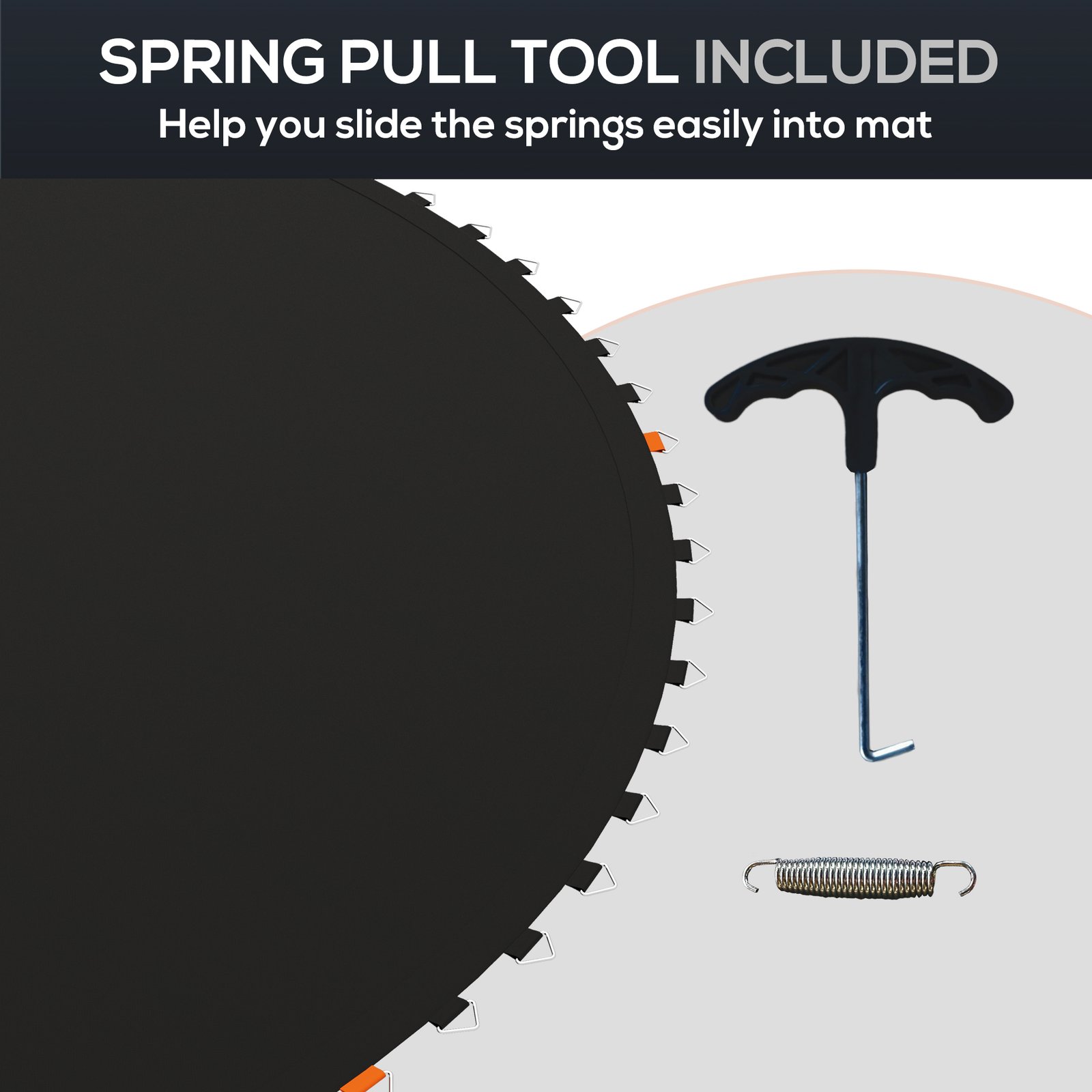 SPORTNOW Replacement Trampoline Mat with Spring Pull Tool, 72 V-Hooks, for 12ft Trampoline using 14cm Springs, Black