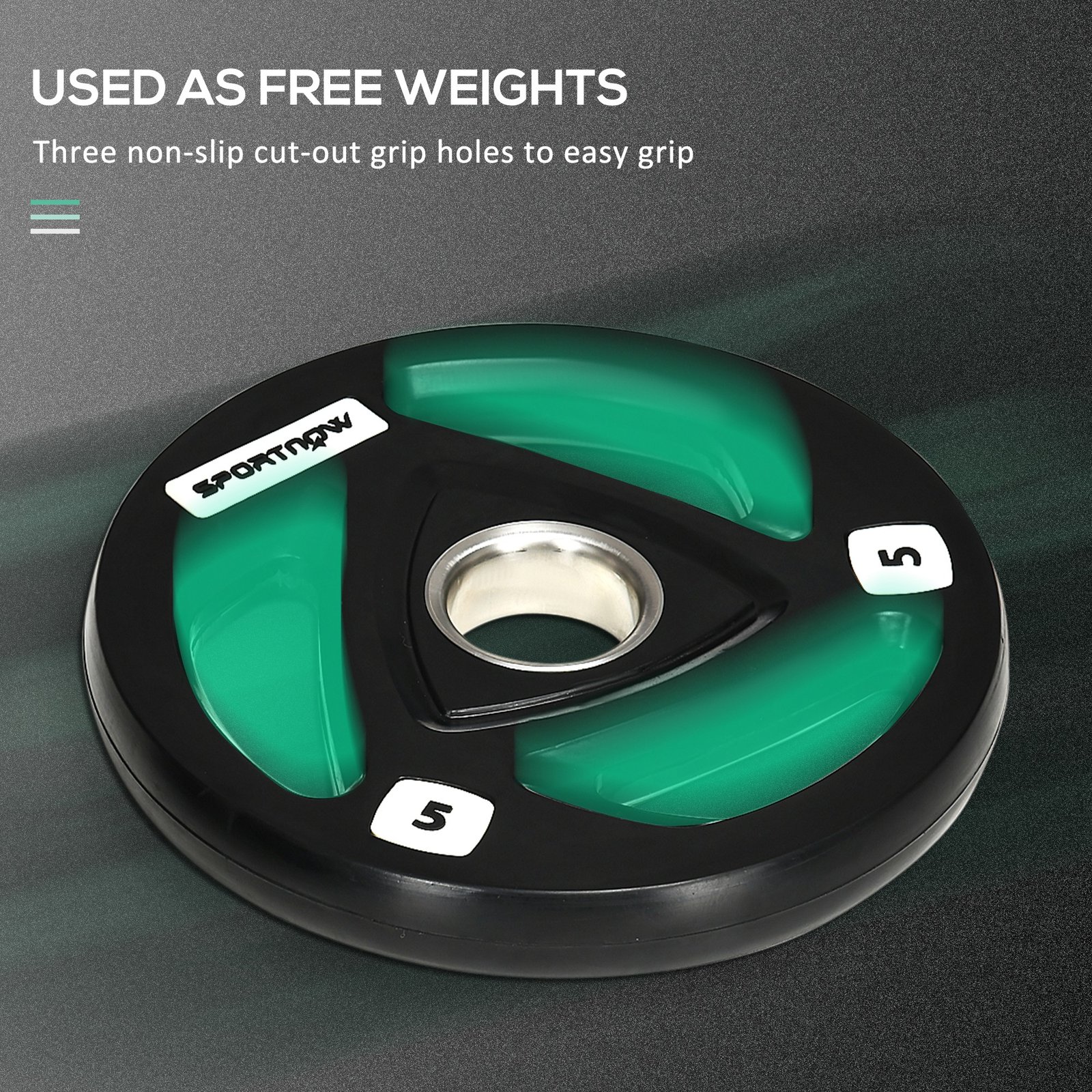- Plate with three hand-grip holes, making it easy to pick up and exercise