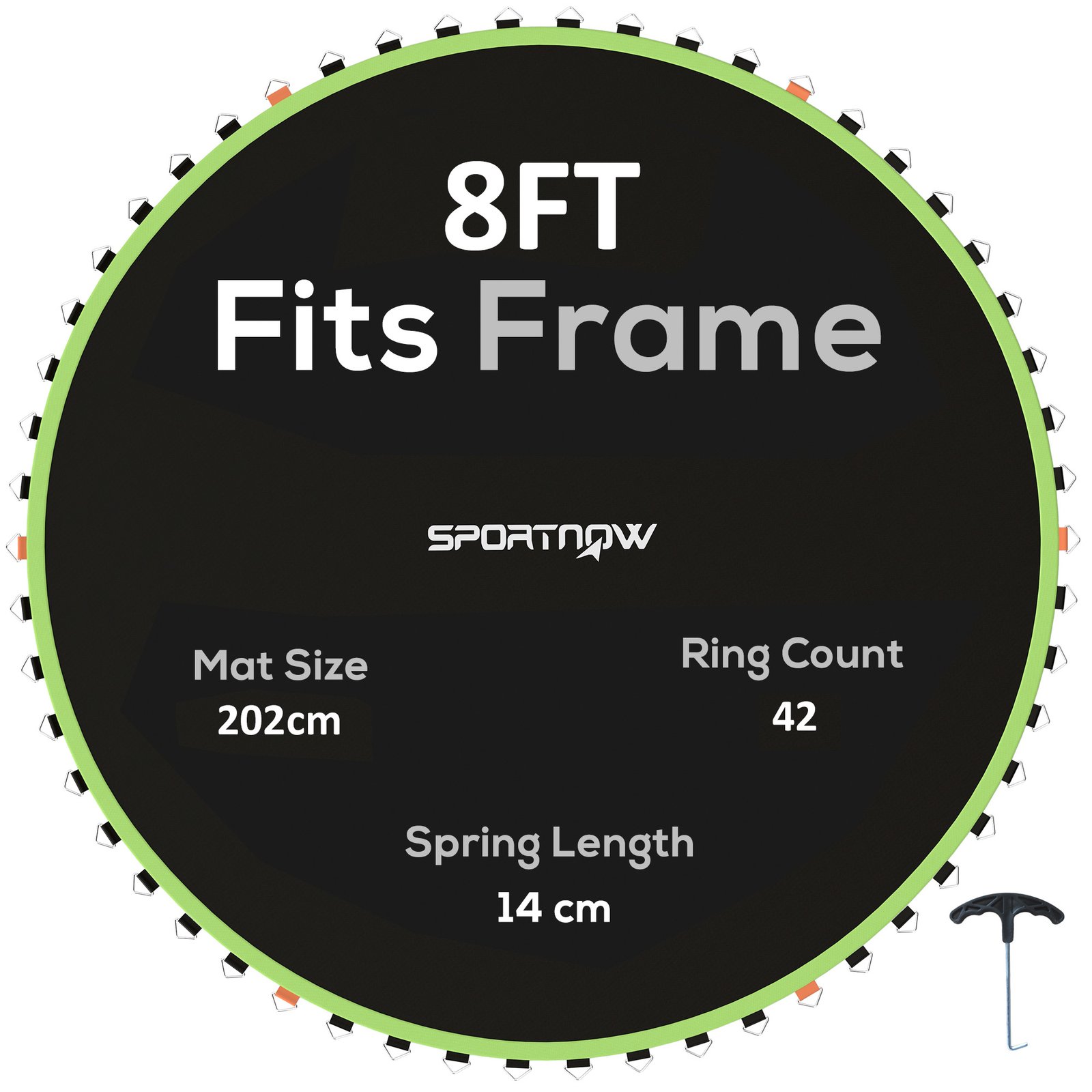 - With 42 V-rings included, this mat fits a 8ft round trampoline using 14cm springs