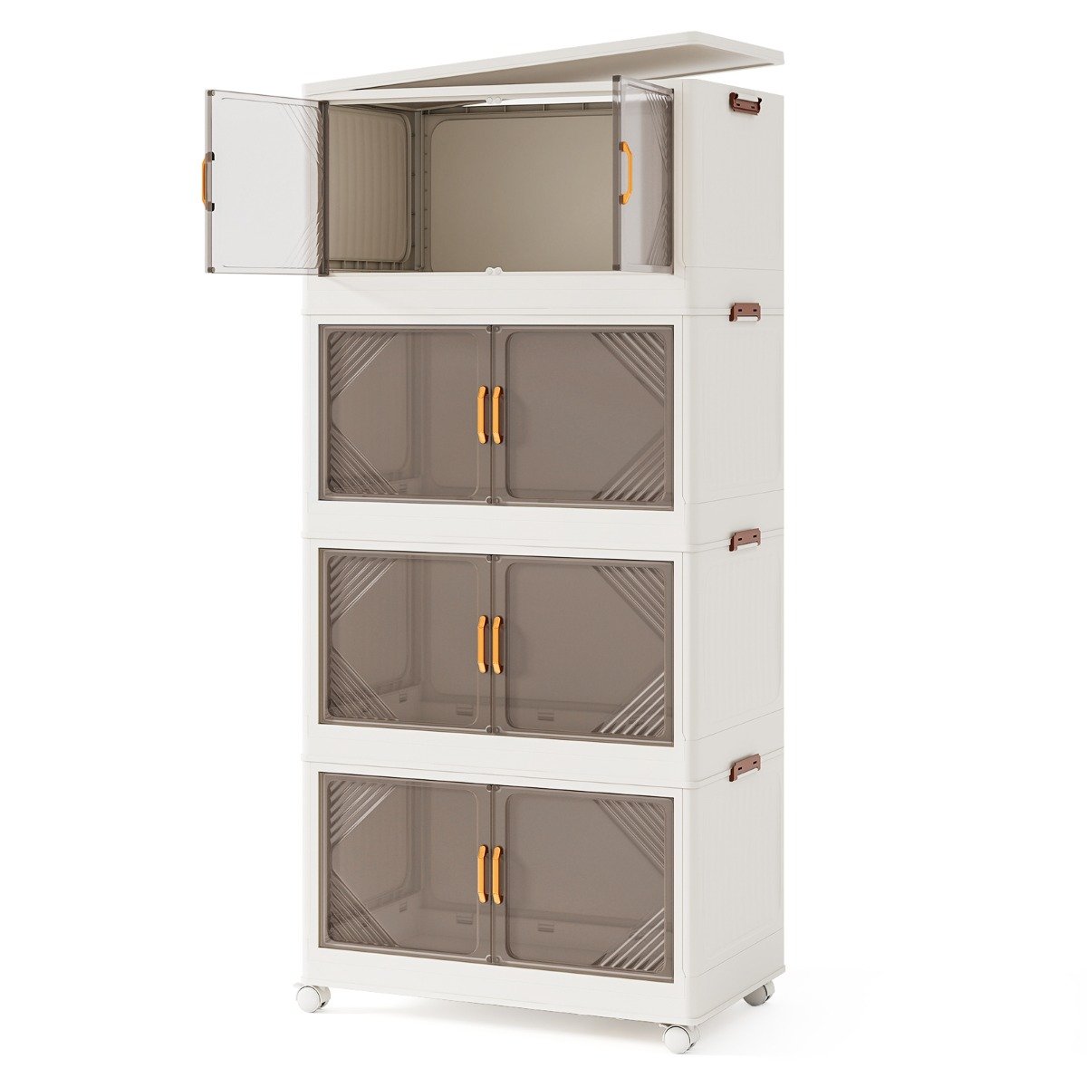 Stackable Storage Containers with Wheels and Doors for Bedroom-White-4-Tier