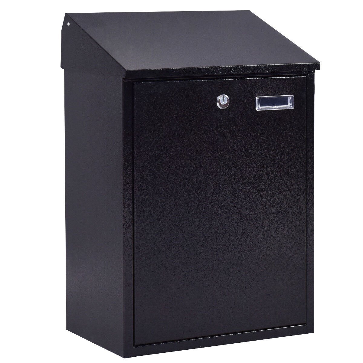 Steel Lockable Postbox Locking Home Letter Post Box Wall Mounted-Black