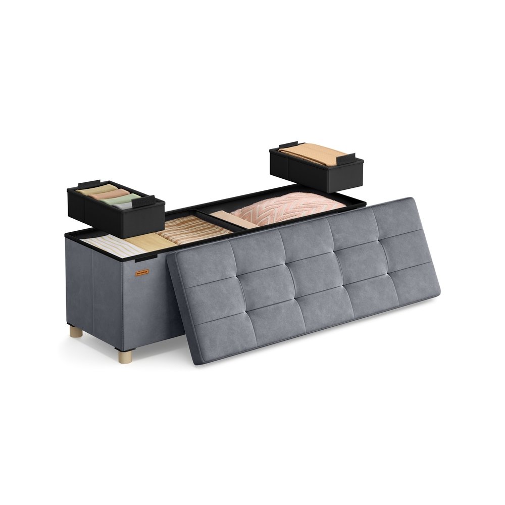Storage Ottoman 38 x 110 x 40 cm 112 L Velvet Surface Slate Grey