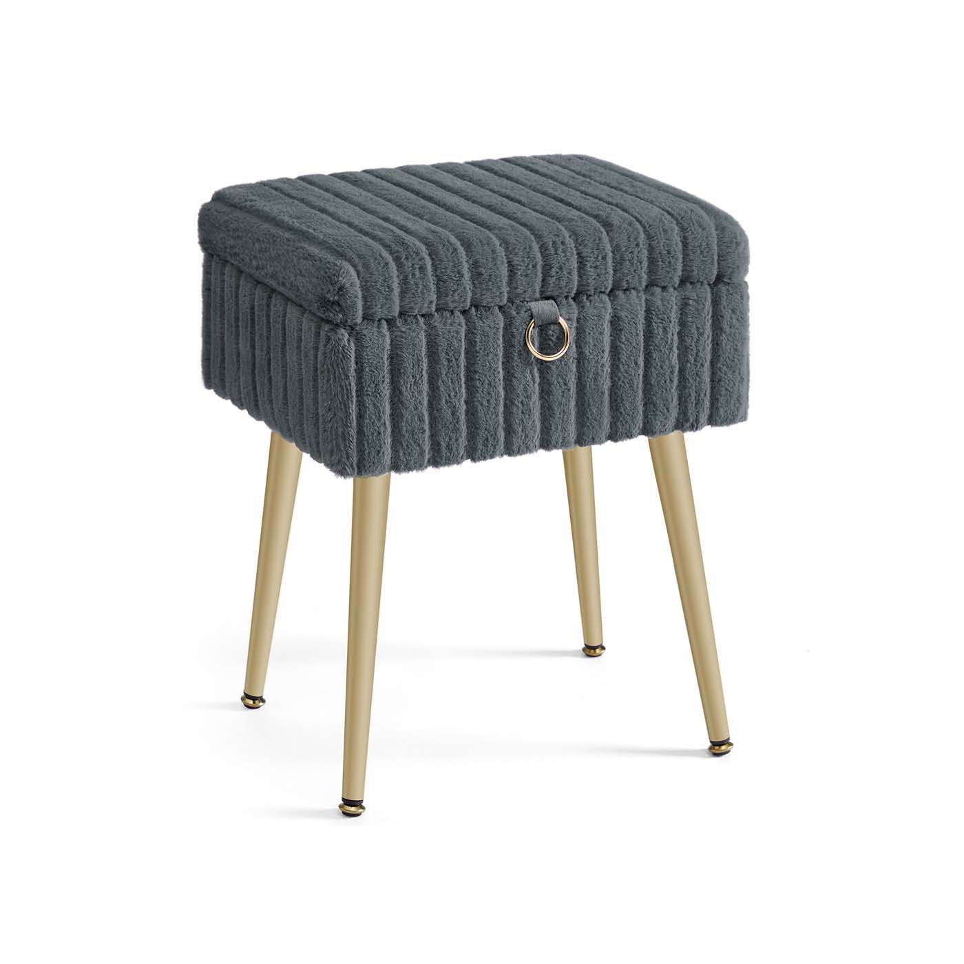 SONGMICS Rectanglular Vanity Stool Chair with Storage, Dressing Table Stool, Footrest Footstool Ottoman, Metal Legs, Adjustable Feet, for Living Room, Bedroom, Makeup Room, Slate Grey LOM505GZ03