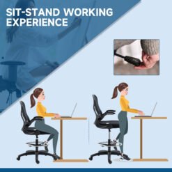This mesh office chair, from Vinseto, comes in a draughtsman design – great for working at higher levels. Adjust the height between 52-72cm easily, thanks to the under-seat lever. The padded seat, curved mesh back, flip-up arms and five-wheeled base make it a pleasure to sit on and use, supporting you as you work. Adjust the bottom bar to rest your lower body comfortably. Tall surfaces? No problem!