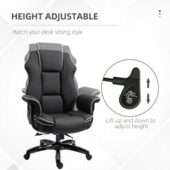 Effortlessly mixing style with comfort, this Vinsetto executive chair is one for everyday use. Thickly padded all over to ensure plenty of comfort, it’s wrapped in smooth faux leather upholstery; white piping on the edges offers a striking contrast. It comes with a 150 reclining back so you can relax back whenever you need, with the height adjustable between 50-56cm to work at the right level. Complete with five wheels to move around easily.