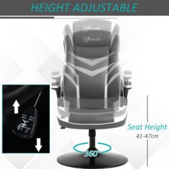 Your search for the perfect gaming chair stops right here – make this Vinsetto gaming chair your pick. Combines supreme style and comfort: wrapped in colour block faux leather, with a large seat and thick padding. It is height adjustable between 109-115cm, so you can sit at a level of your choice. Complete with lift-up arms, so you can tuck this gamer chair underneath your desk when you’re done.
