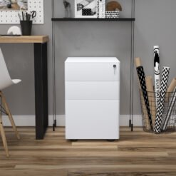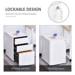 Maximise your space with the three drawer filing cabinet from Vinsetto that offers spacious storage and a top surface, doubling as a printer stand. Enjoy organised ease with adjustable hanging rail for three different file sizes and a lock to secure your important essentials. What’s more, the Vinsetto lockable drawers with compact design fits neatly anywhere and rounded corners prevent accidental bumps, making it a great office ally.