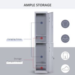 Vinsetto Locker Cabinet Storage Cold Rolled Steel w/ Shelves Vertical Cupboard Grey 38 x 46 x 180 cm