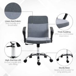 Vinsetto Office Chair Linen Fabric Swivel Computer Desk Chair Home Study Adjustable Chair with Wheels, Grey