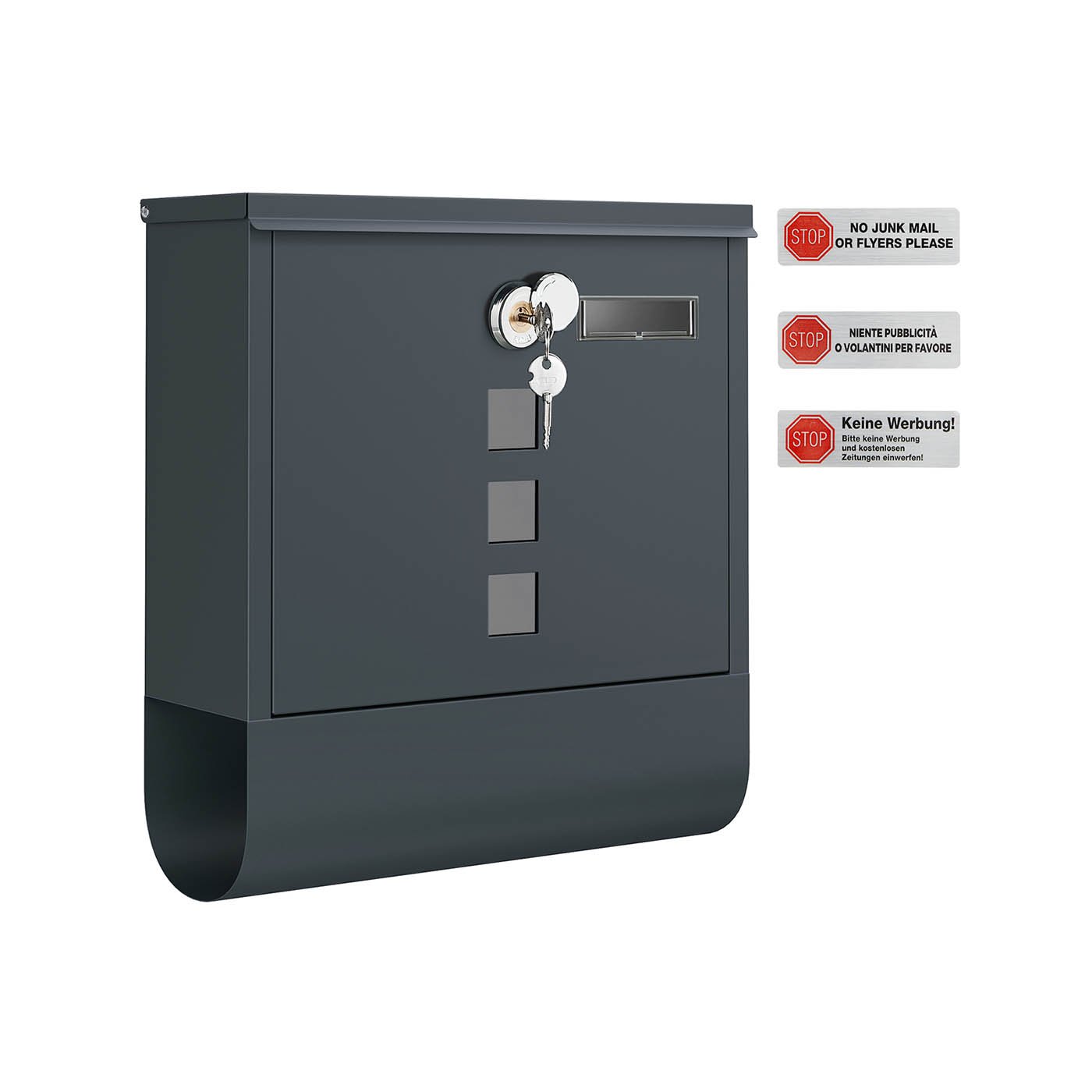 A Shelter for Mail: Did the postman leave your post on the floor? Got your mail wet on rainy days or disappeared? SONGMICS mailbox comes to the rescue by providing your mail a small shelter. Crafted from powder-coated metal, the mailbox protects your post from the elements for long-lasting service.Details Make it Stand Out: The mailbox features a multitude of details that exceeds your demands. The lock is covered by a protective cap that protects it from water and rain. The viewing windows tell you when you have mail, the nameplate lets you put your name on, the newspaper holder allows for extra convenience, and included mounting hardware makes installation a breezy thing.Specifications:Colour: Anthracite GreyMaterial: Powder-Coated SteelProduct Size: 30.5 x 9.5 x 33.3 cm (L x W x H)Product Weight: 1.6 kgPackage Contents:1 x Mailbox1 x Accessory BagSONGMICS Notes:For added longevity, it’s recommended to mount the mailbox under an eave or other protected areas.