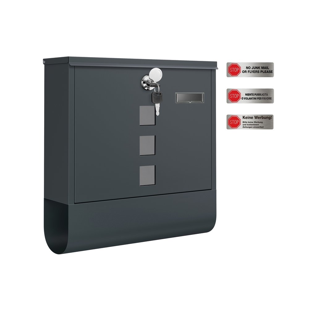 SONGMICS Mailbox, Wall-Mounted Post Letter Box, Capped Lock with Copper Core, Newspaper Holder, Viewing Windows, and Nameplate, Easy to Install, Anthracite Grey GMB20AG