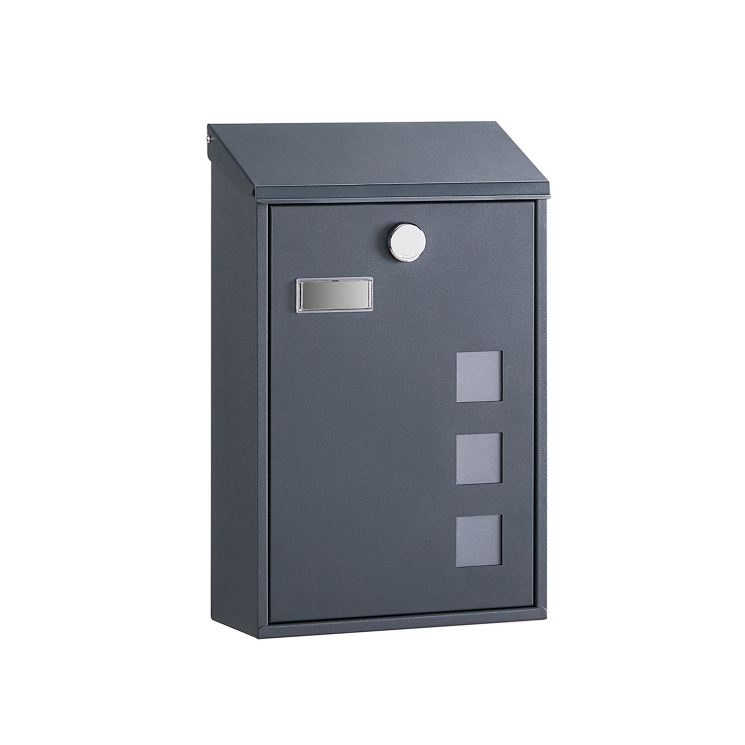 SONGMICS Modern Mailbox, Wall-Mounted Post Letter Box, Copper Core with Swivel Cap, Viewing Windows, Nameplate, Easy to Install, Black GMB031B02