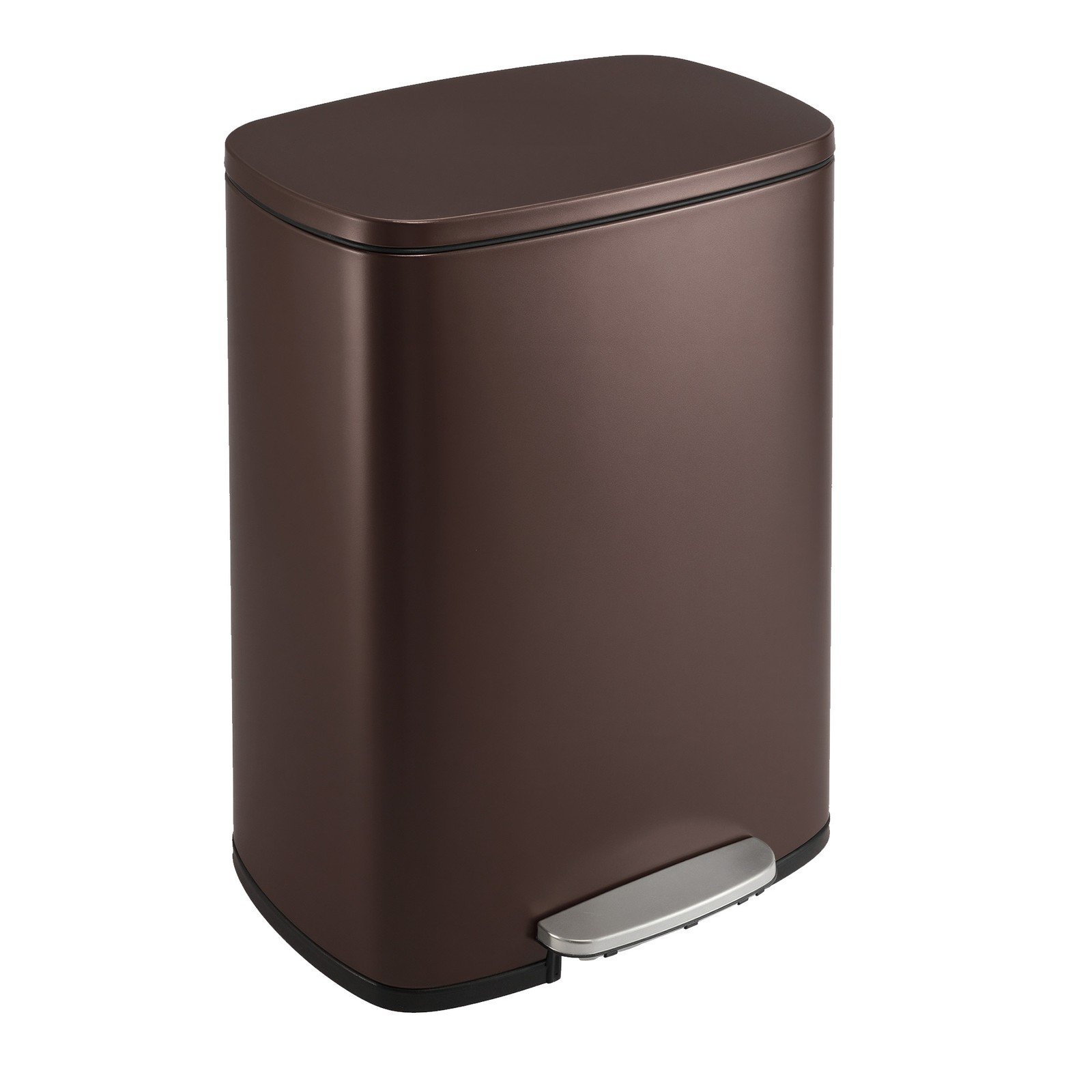 Waste Bin 50L, Steel Step-On Pedal Bin with Soft Close, for Kitchen, Removable Inner Bucket, Brown