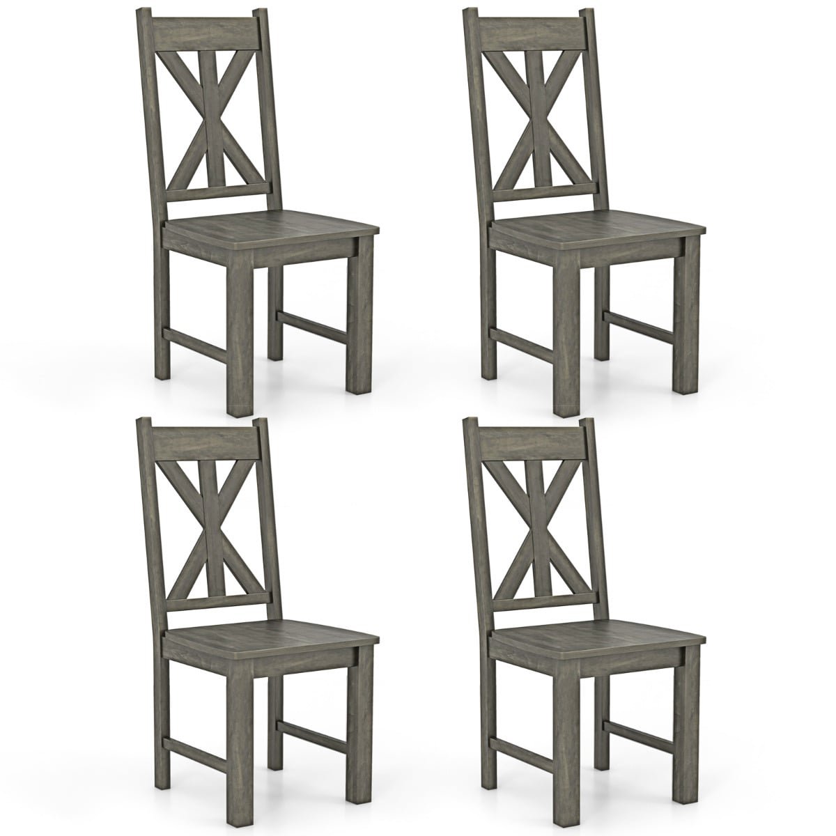 Colour: Grey Material: Rubber Wood Overall Dimensions: 53 x 46 x 100 cm (L x W x H) Seat Dimension: 46 x 41cm (L x W) Seat Height: 44 cm Max Load Capacity: 150 kg Net Weight: 29 kg Box Qty:1(May vary by batch) Is Assembly Required: Yes Package Includes: 4 x Dining Chairs 1 x Instruction MAanual